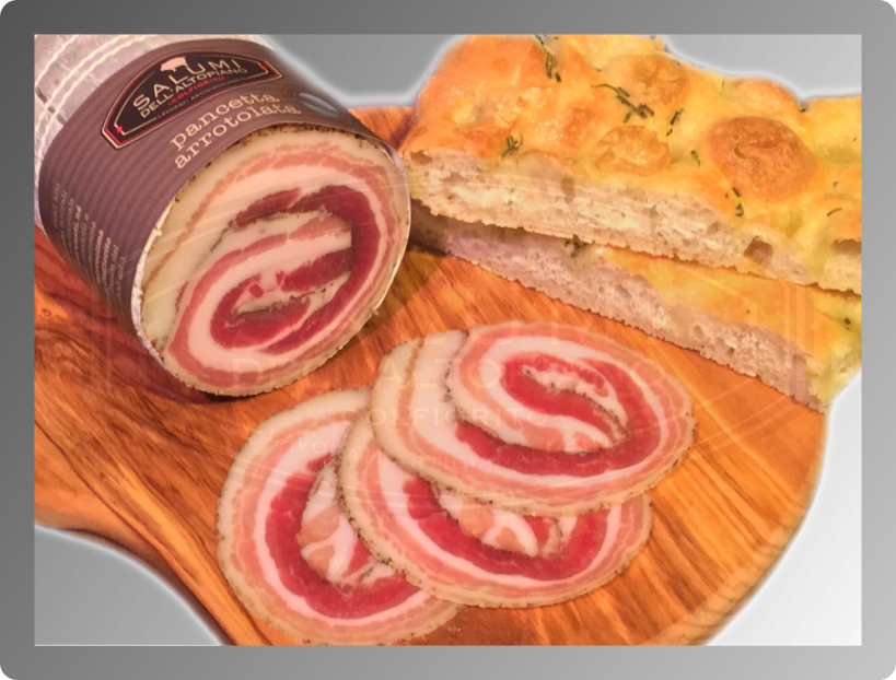 Ottenuta selezionando le migliori pancette con le giuste proporzioni di grasso e magro. Pazientemente insaporite con bacche ed erbe fresche dell'Appennino gli conferiscono un aroma unico. Ottima sia al taglio per un panino o presentata su un tagliere accompagnata da altri salumi. Ottima anche utilizzata in cucina per le Vostre Ricette.